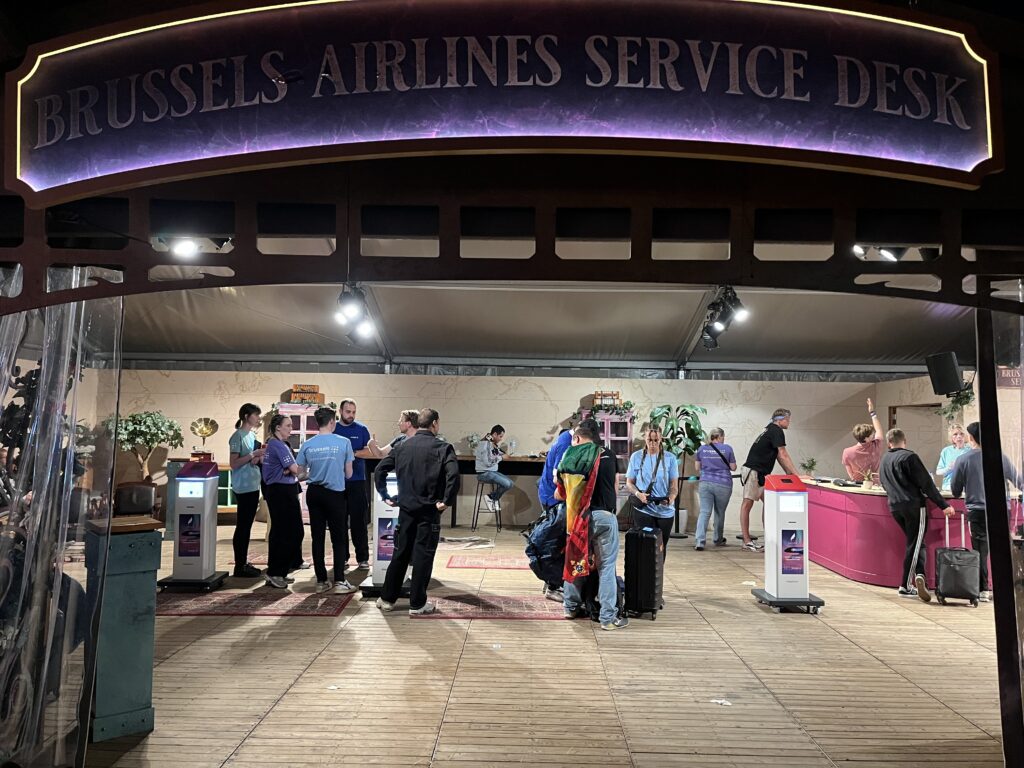 Our mobile bagchain kiosks are also in use at big events and conferences. Airlines offer pop-up baggage check-in locations where passengers can check-in their baggage. Using our mobile bagchain tag kiosks.